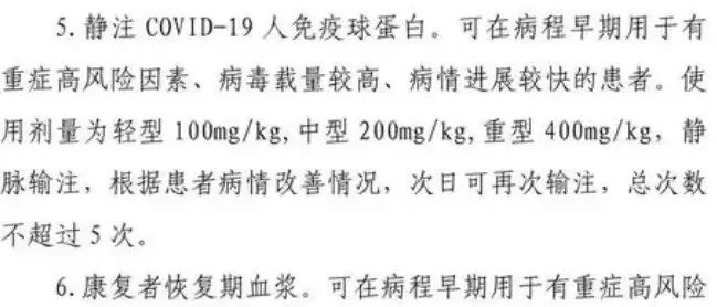 静注COVID-19人免疫球蛋白和康复恢复期血浆,可在病程早期用于有高危因素、病毒载量较高、病情进展较快的患者。