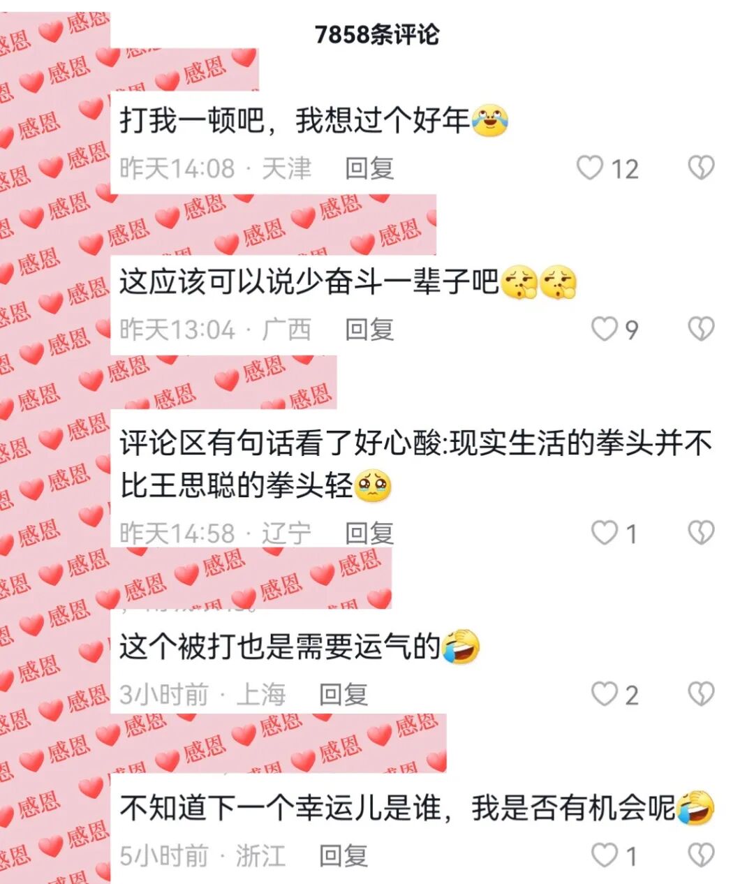 除了这种之外,还有好多人排队等挨打,说自己比较结实,可以挨打,甚至可以每天挨打。