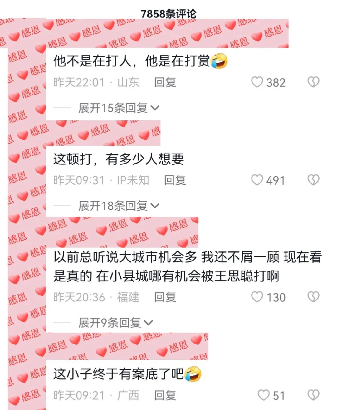 有人说:评论区的大家,一个一个来抖机灵,洋洋得意自己在玩梗,两个字,真的够下贱!