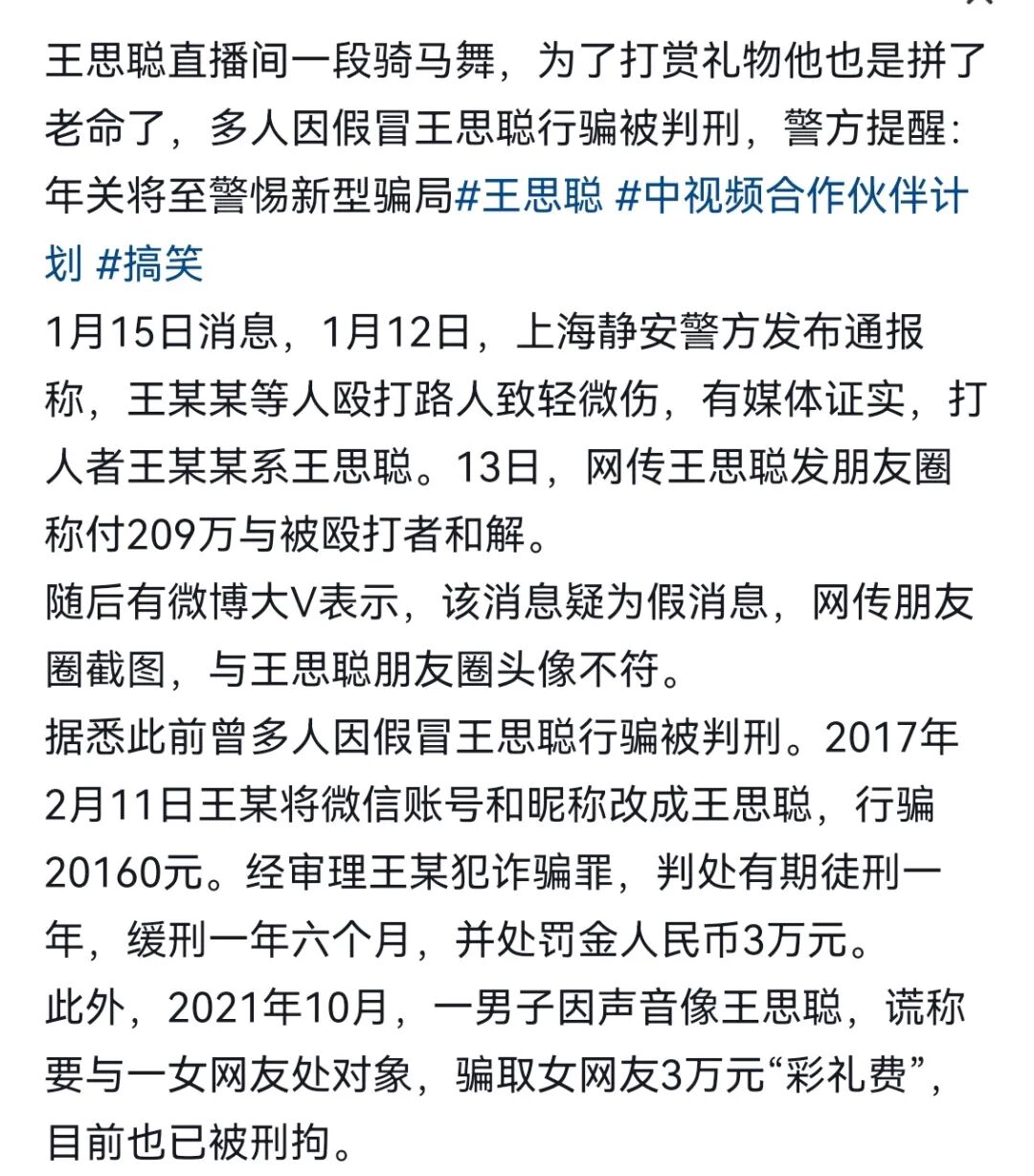 这个朋友圈不是王思聪发的!是冒充者,并且已经被行政拘留,判刑一年,缓刑一年六个月,并处罚金3万元!