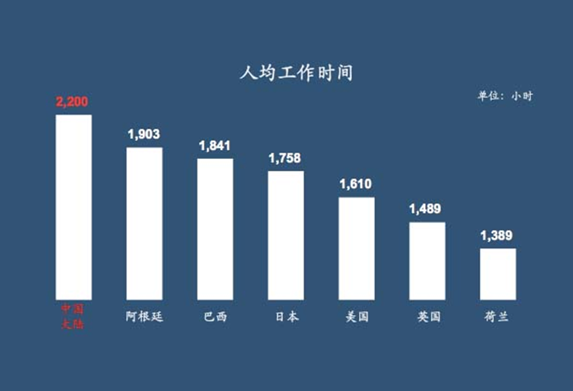 我国人均工作时间高达2200小时,远超美国和日本。几乎是全世界工作时间最长的国家。