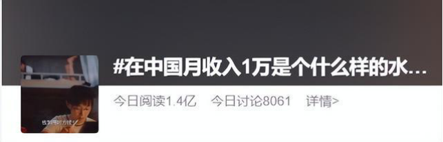 就在这几天,话题#在中国,月收入1万是什么样的水平#,冲上热搜。
