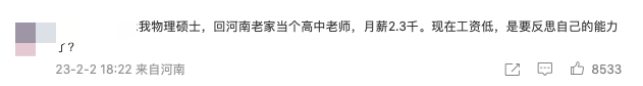 “我物理硕士,回河南老家当个高中老师,月薪两三千,现在工资低,是要反思自己的能力了?”