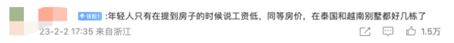“年轻人只有在提到房子的时候说工资低,同等房价,在泰国和越南都好几栋了。”