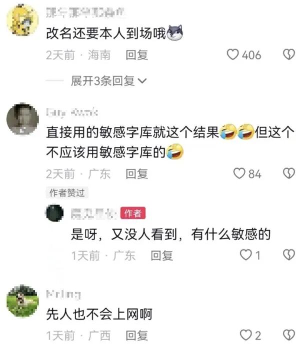 很多网友也表示,自己用了几十年的名字,也被不同平台认定为敏感词!