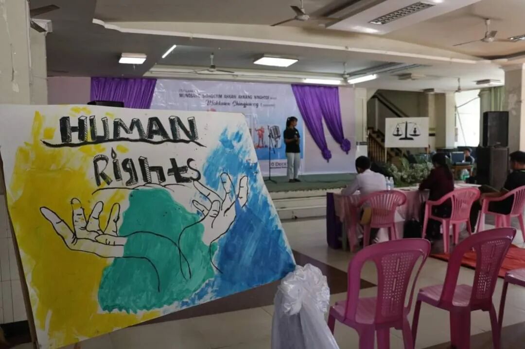 缅甸克钦邦,克钦独立军(KIA)控制地区拉咱市举行第74个世界人权日活动。