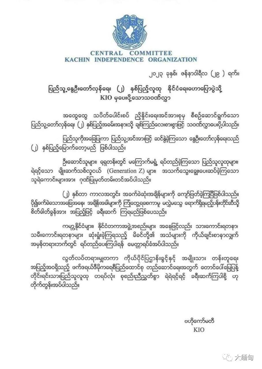 KIO在贺信中向春天革命的领导者、勇敢地站在前线的人们、Z世代青年(Generation Z)以及献出生命的英雄们致以崇高敬意。