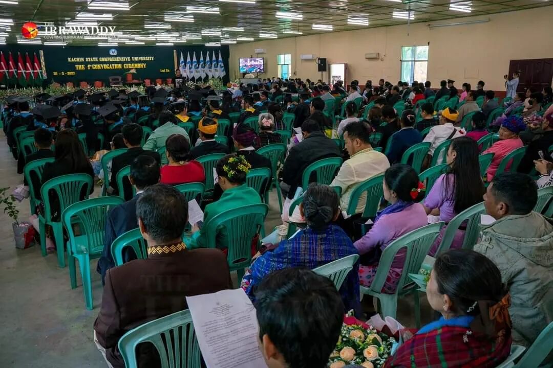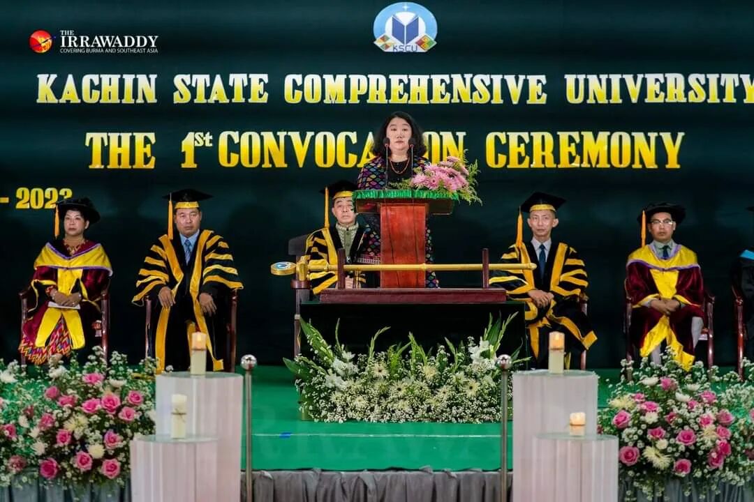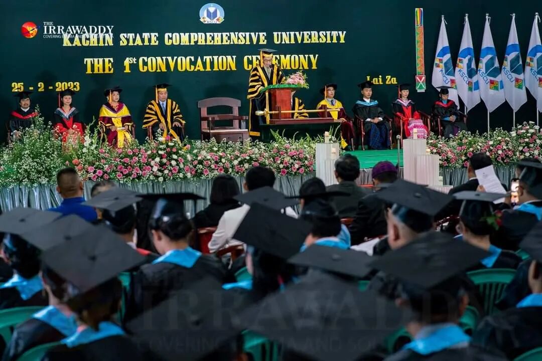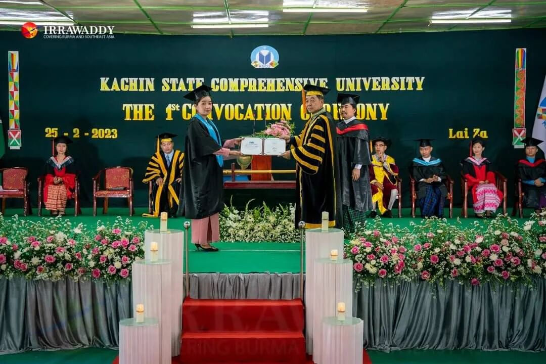 该大学设有法律、经济、历史、化学、英语、缅甸语等专业,克钦独立委员会(KIC)第一副主席滚莫中将为63名毕业生颁发毕业证书。
