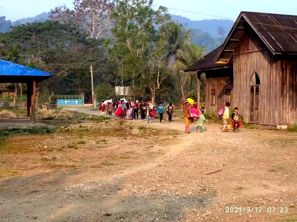 受战事影响,此刻,附近村寨民众正在外逃避难!