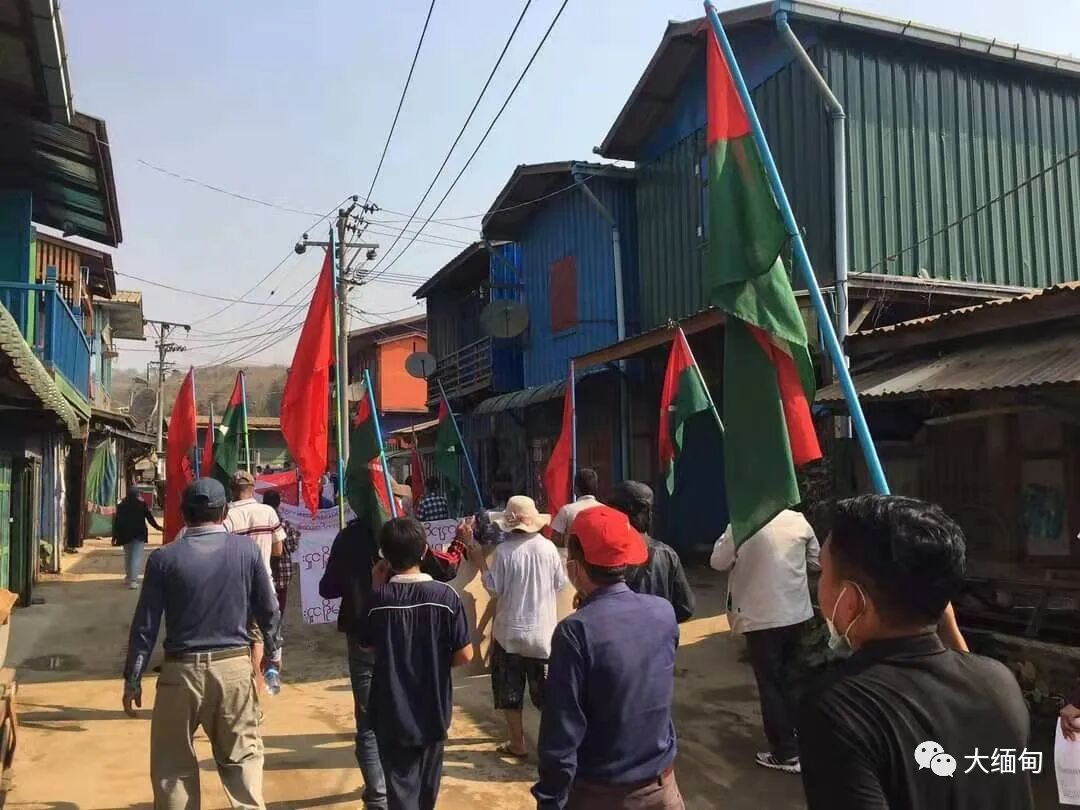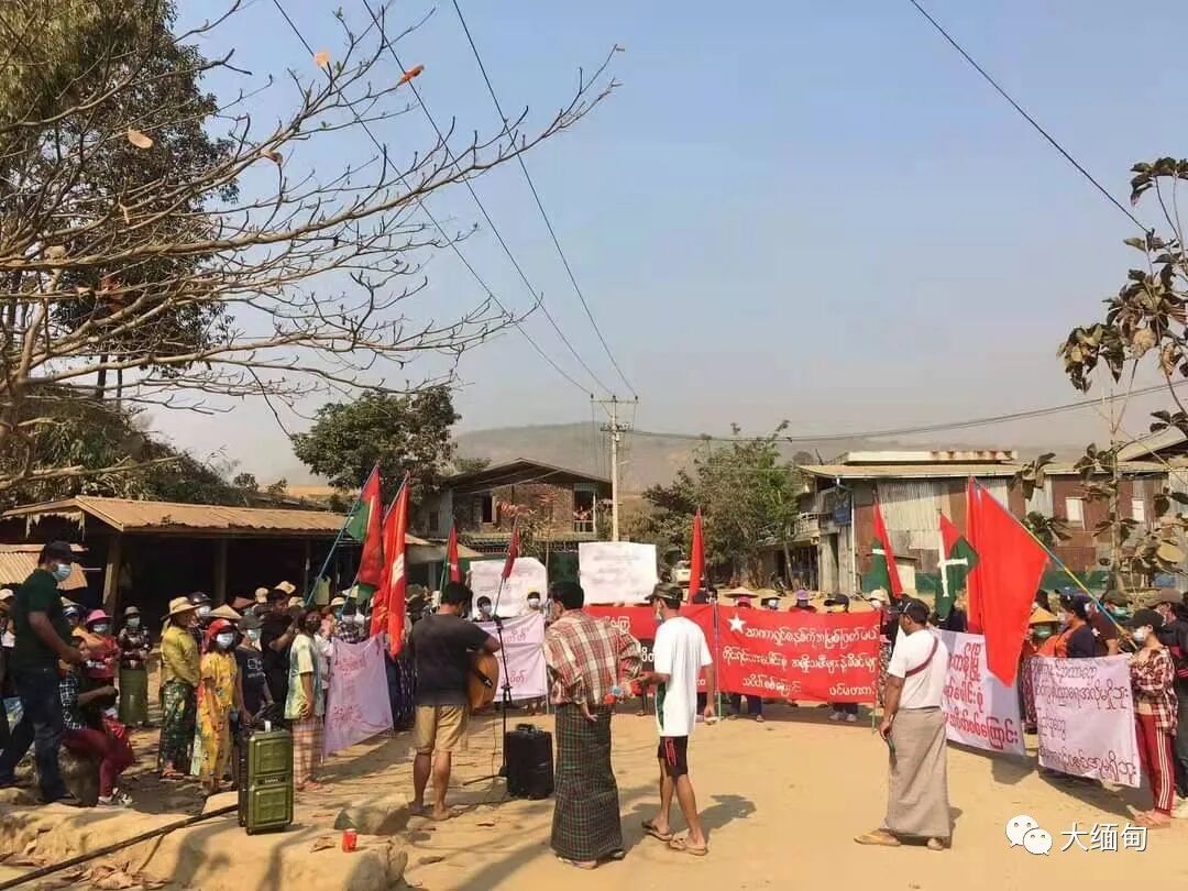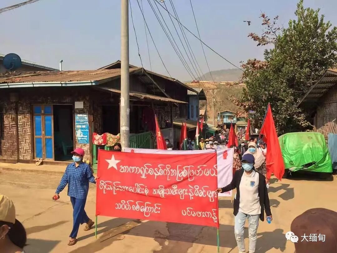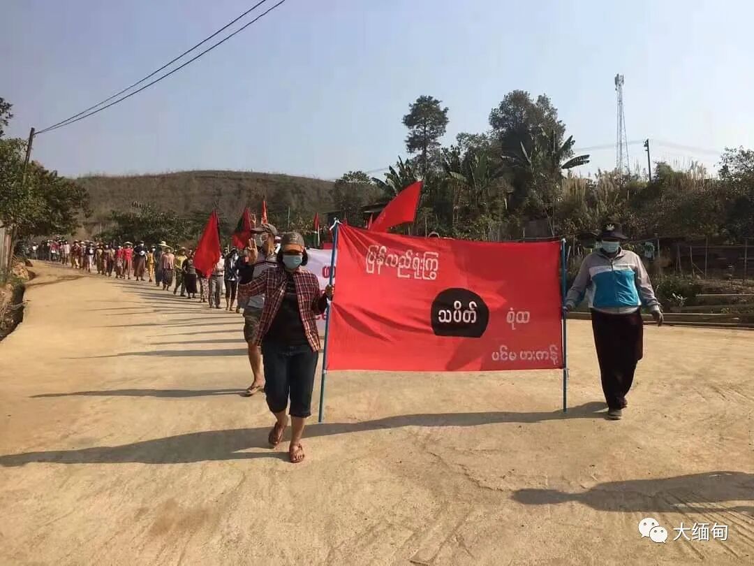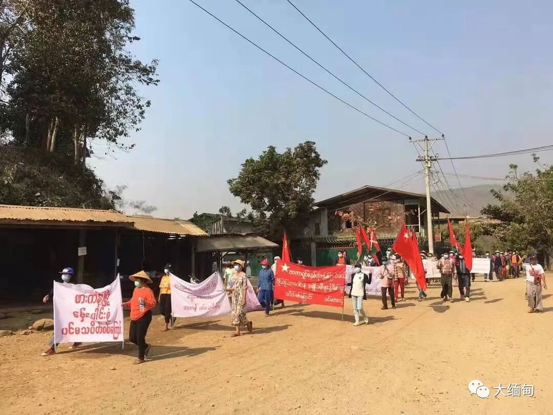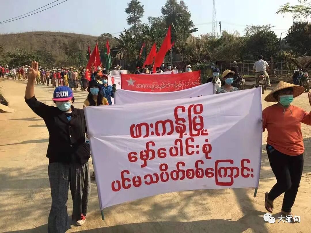 缅甸克钦邦翡翠产地帕敢镇已断网接近7个月,3月11日上午,该镇部分民众举行抗议示威游行活动。