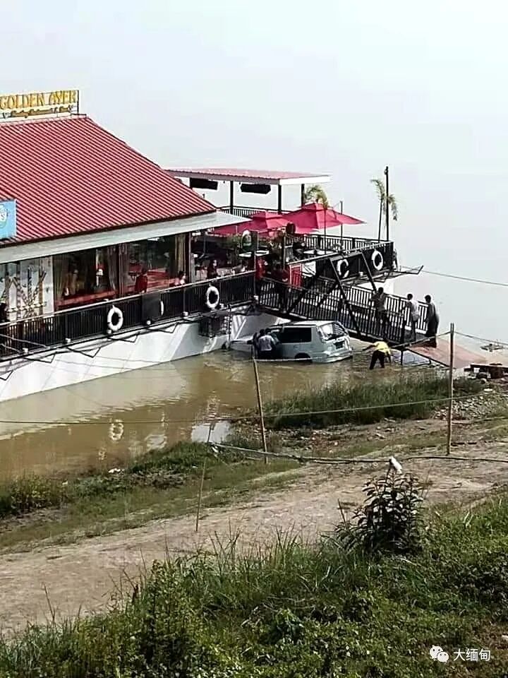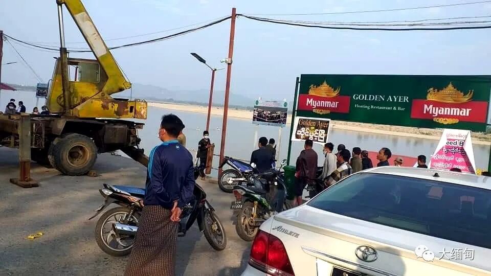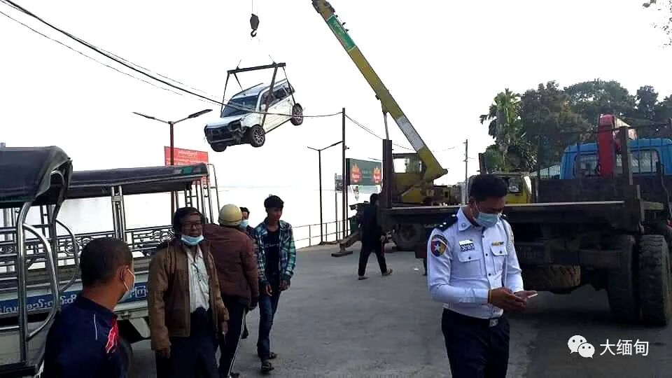 2021年1月24日下午1点45分左右,缅甸克钦邦密支那镇区城区市政部门附近区域的一家位于江边的水上餐厅前面,一辆私家车失控栽进伊洛瓦底江中。
