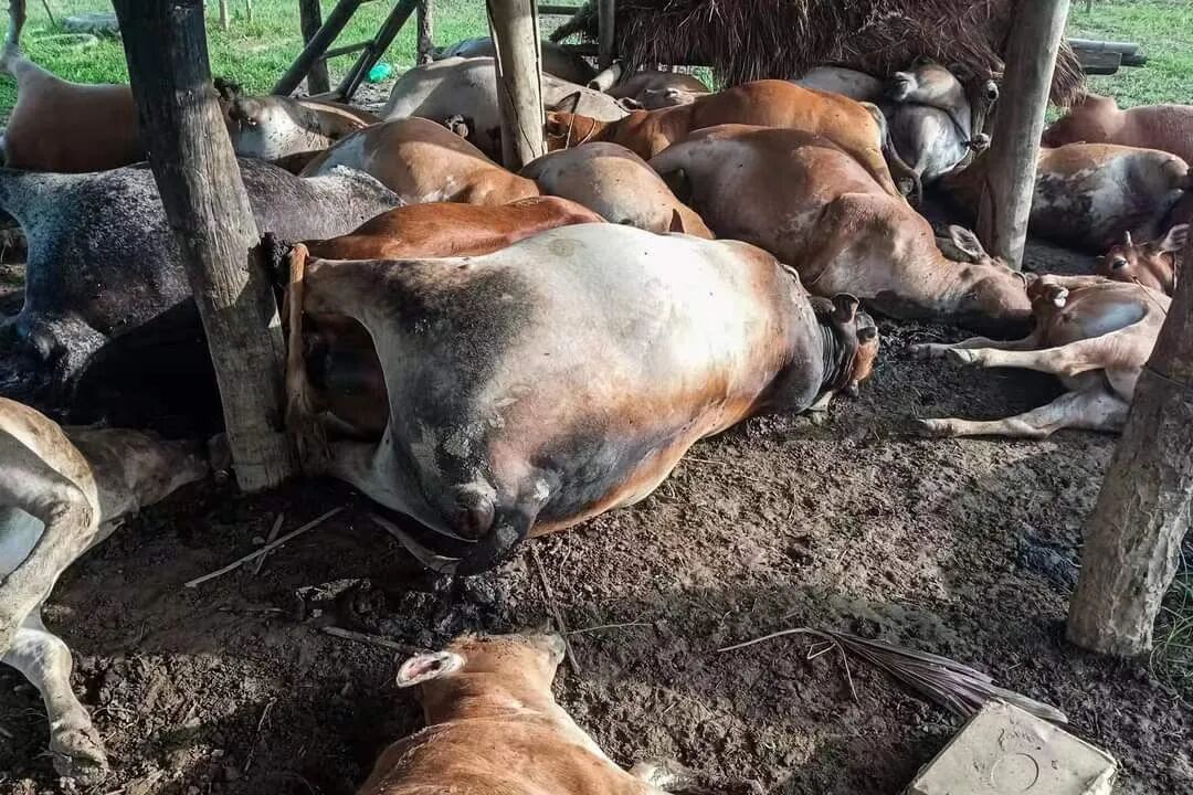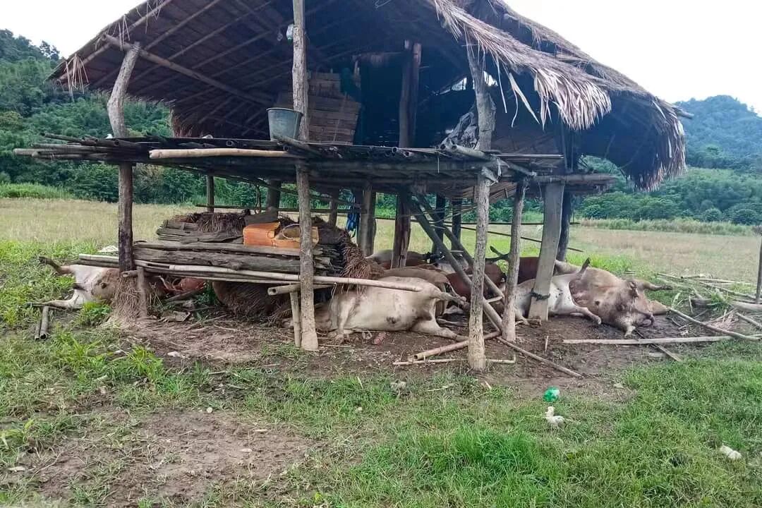 牲畜能有什么错?!克钦邦南莫迪镇一个窝棚里,24头牛遭雷劈死亡