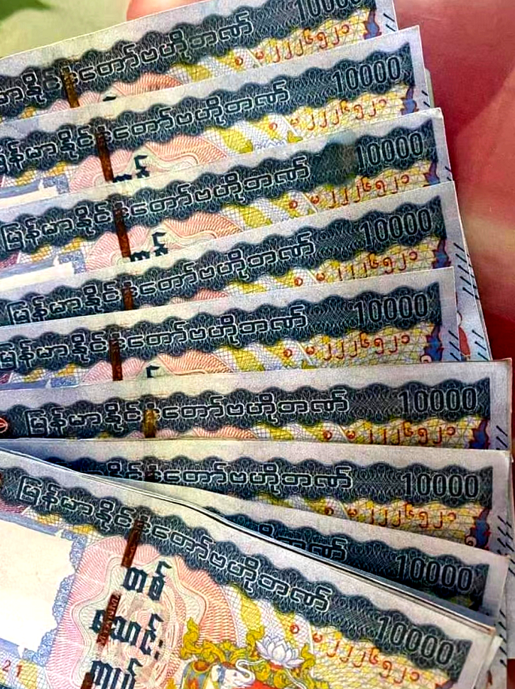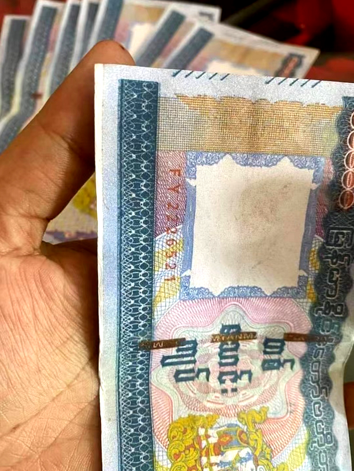 缅甸克钦邦密支那市的杂货铺、手机店、货币兑换、民间汇款等行业假币泛滥。当地一家经营民间汇款的Wave Money老板表示,一万面额的缅币假钞与真钞非常非常相似,但摸起来相对更光滑。