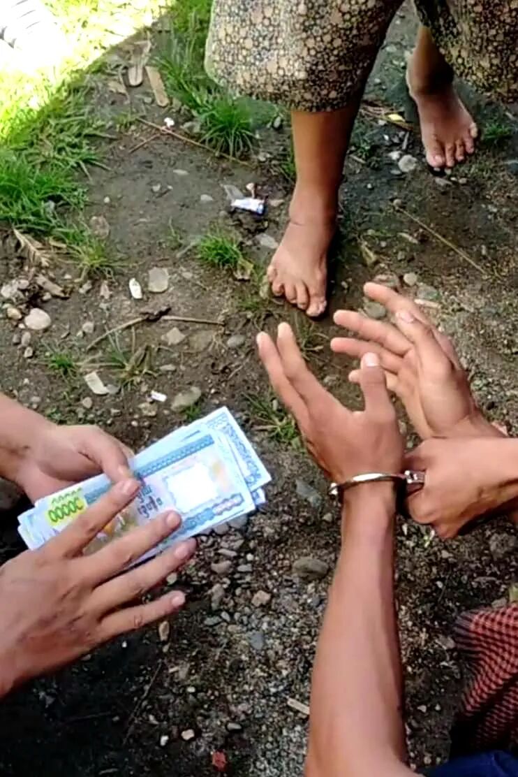 8月24日中午12时许,缅甸克钦邦葡萄镇“穆腊昔迪”街区一个市场内,使用一万缅币假钞的2名男子被群众围堵抓捕,其中1名被抓获。