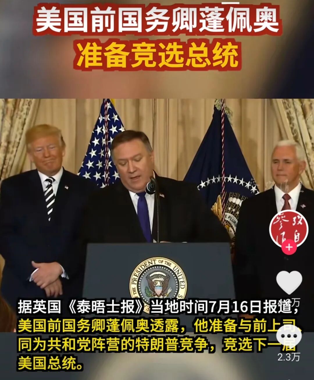 一年前,蓬佩奥说,我不会参加2024总统大选的,只要特朗普参选2024,我将是他最好的帮手。