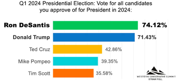 德桑蒂斯支持度74.12%,特朗普为71.43% 。