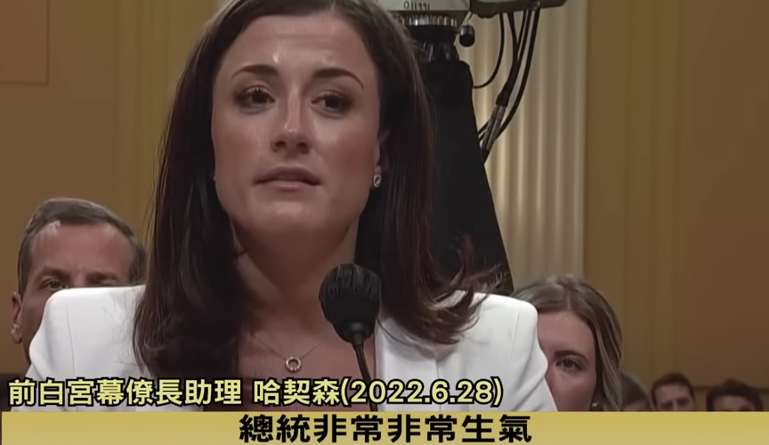 这女人说,总统在国会暴动那天,非常非常愤怒,他鼓动暴民去占领国会。