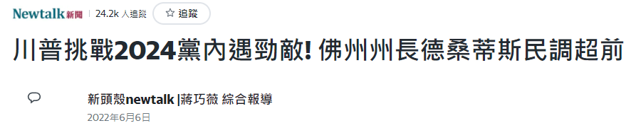 而对有野心的德桑蒂斯来说,2018年可以抱抱特朗普臭脚,可2024年了,他想要进一步实现自己的政治野心。