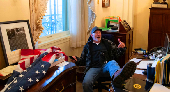 去年1月6号美国国会暴动那天,一名特朗普粉丝冲进佩洛西办公室,然后打开她的电脑查看,可能还带走了什么资料。