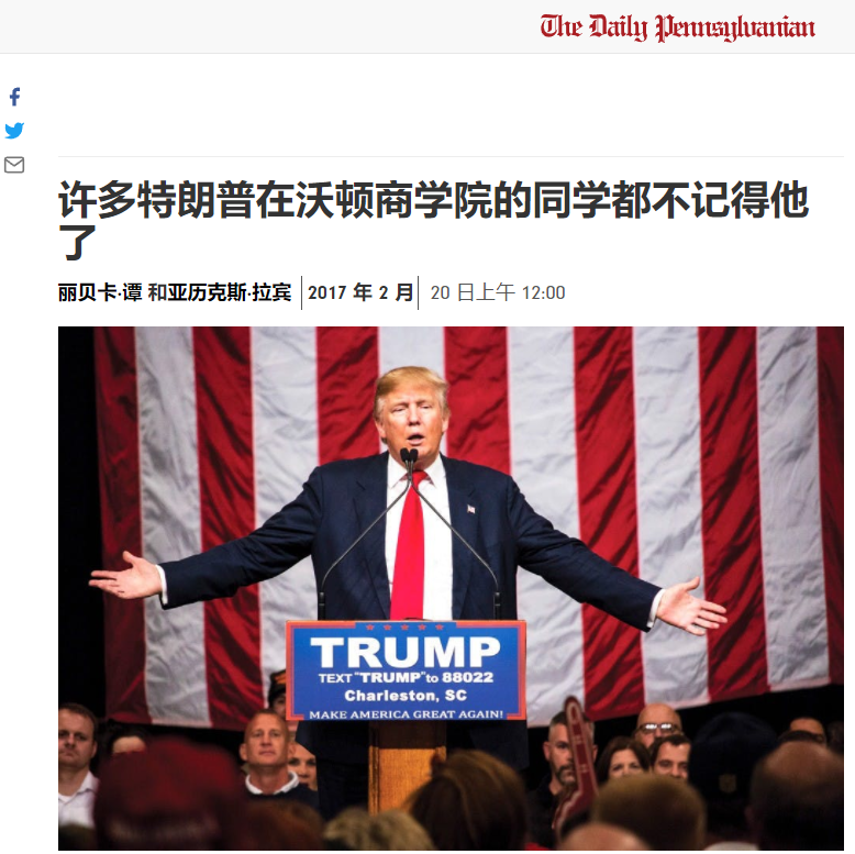 我查了很多资料,搜了很多信息,都没找到特朗普在沃顿时期的生活,最后只找到这样一篇调查报道