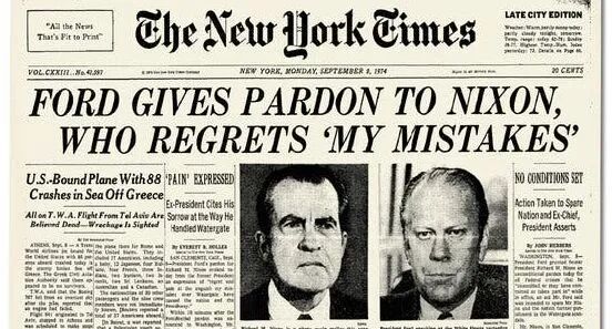当年尼克松“水门案”那么严重的事,为什么后任者“福特”上台第一件事,就是赦免尼克松呢?