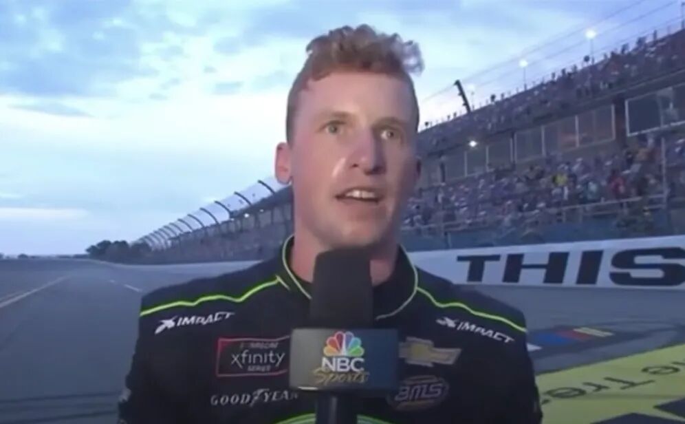 这个梗来自于一场赛车比赛,在一场赛车直播的时候,主持人就趁着休息时去赛场里采访。