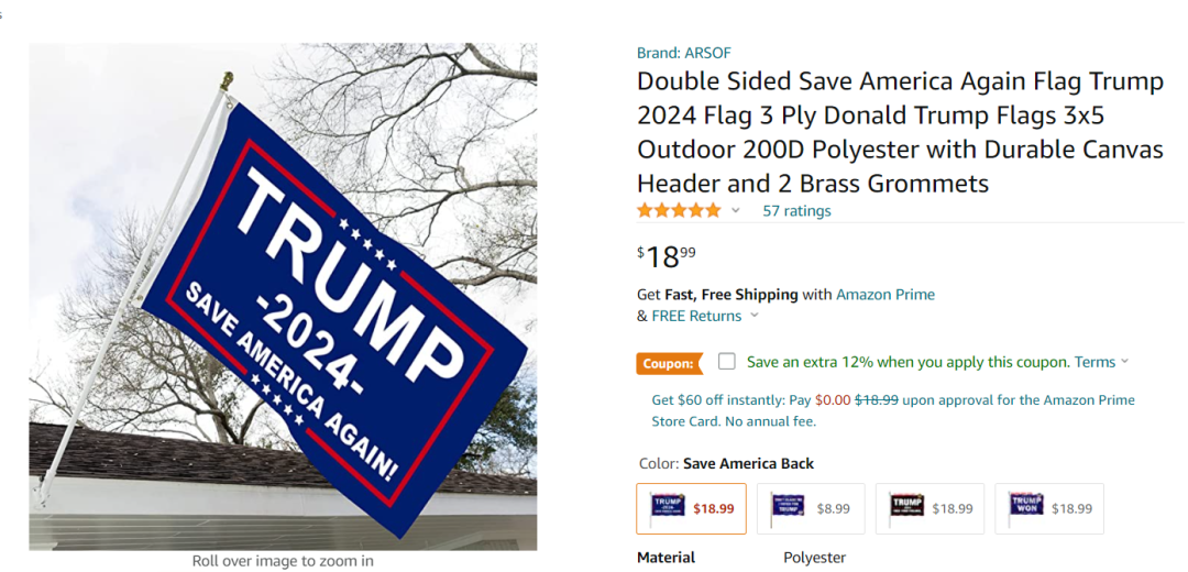 可很多人不会在网上买,而是在集会或者街边店铺买,这样的话一面“特朗普大旗”大约售价40美元(253人民币)。