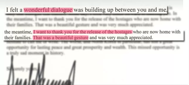(特朗普给金的信,看的人起鸡皮疙瘩,我写情书都没那么肉麻。)