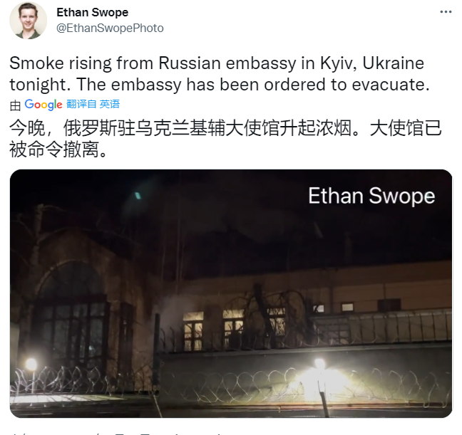在首都基辅,俄罗斯大使馆内,开始焚烧机密文件。