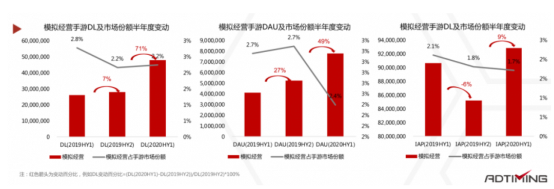 据ADTiming发布的数据显示,2020年模拟游戏DAU市场份额增加7%、头部游戏数目增加4%,且单品吸量能力也呈明显增长的趋势。市场的增长不仅来源于头部游戏数目增加,还因为头部游戏单品吸量能力增加。模拟类市场IAP内购营收增长1%,绝对额度接近3亿美元,市场营收同样保持上升。