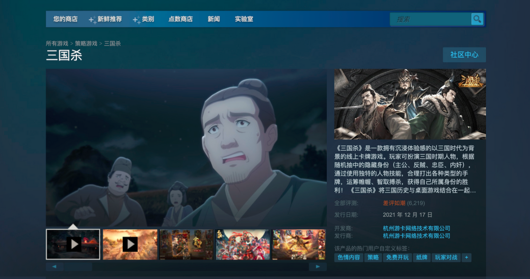 在上线Steam不到10天的时间里,《三国杀》便以不到7%的好评率,成为了有史以来好评率最低的Steam游戏。
