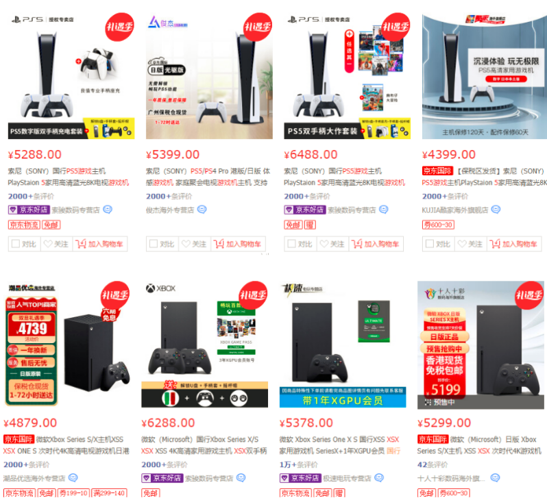 而在国内的各大电商平台或者二手平台上,PS5和XSX的标价往往都远超官方的建议销售价。这都是黄牛抢货囤货导致的售价上涨。