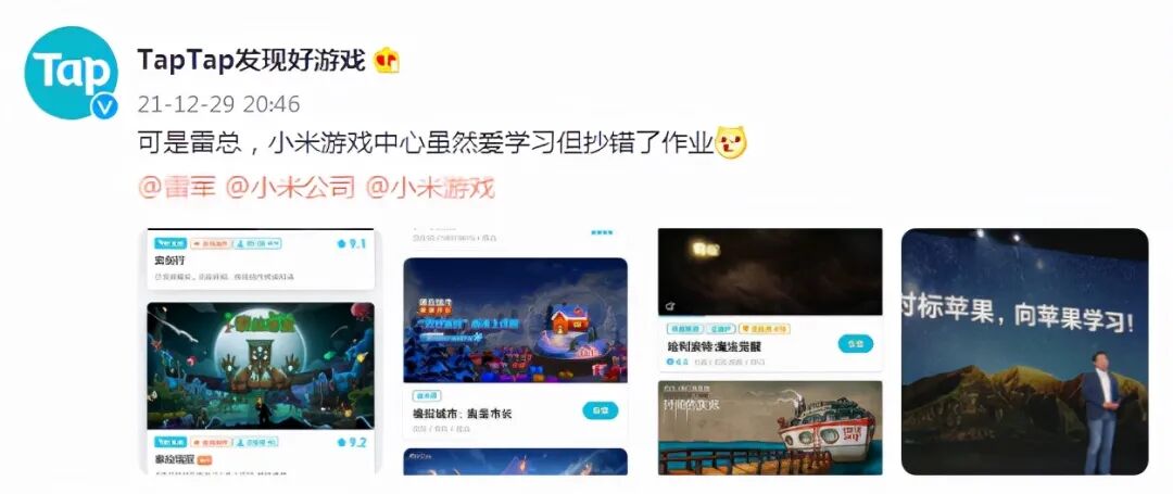 毕竟即便你小米对标苹果,他TapTap也不再是当年的无名之辈了。