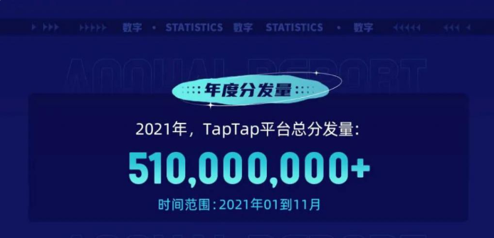 同样是临近年末的时候,TapTap公布了2021年度报告(1-11月),并放出一个令人惊讶的夸张数据——TapTap全年总分发量突破5亿1千万份。