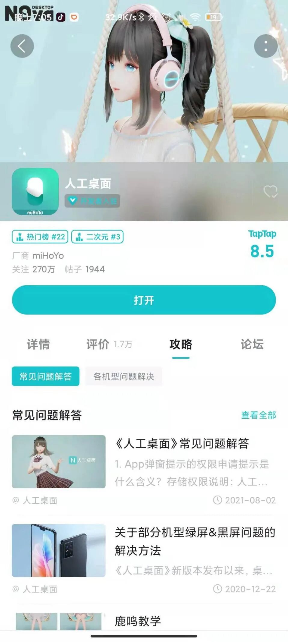 根据当时的数据显示,上线当天《人工桌面》就拿下了TapTap热门榜、新品榜榜首,评分高达8.2.如今一年过去了,这个评分居然不降反增,达到了8.5分。