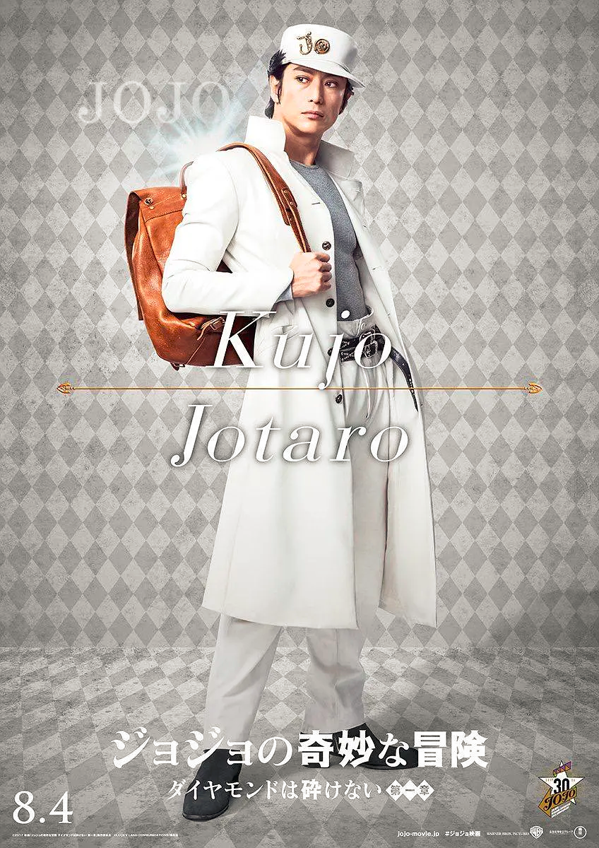 “无敌写在脸上”的承太郎,即便在第四部仍旧强壮到惊人的承太郎,在剧中变成了一位瘦弱的硬派大叔。当然,伊势谷友介演技无可挑剔,要怪只能怪这部动漫的复原难度实在太高。
