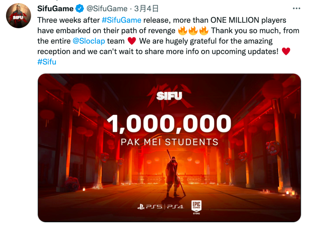 销量,能够说明一切。在游戏发布仅三周之后,Sloclap于近日再次宣布,《师父》的销量就已经成功突破了100万套。在取得这样的成绩后,玩家和市场对于《师傅》的质疑不攻自破。