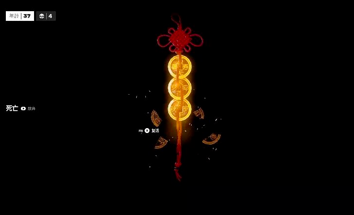 主角死后可在吊坠的加持下原地复活,但代价就是要付出相应的寿命。吊坠上一共五枚铜钱,每一枚铜钱都代表着十年寿命,当最后一枚铜钱破碎后,主角便无法再复活,死亡后会重新开始游戏。玩家的初始年龄为20岁,每变老10岁,主角的生命上限会减少,但攻击力会提升,主角死亡后会继承永久解锁的技能、收集到的信息与文本、到达每个关卡时的进度。