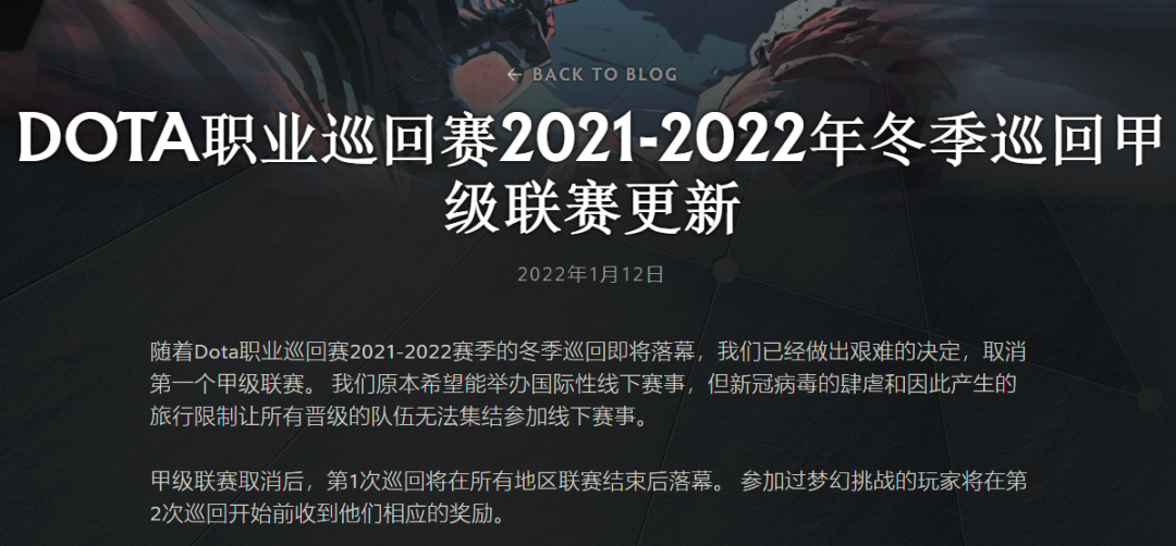 Dota2在2022年作出了一个艰难的决定——取消第一个Major。