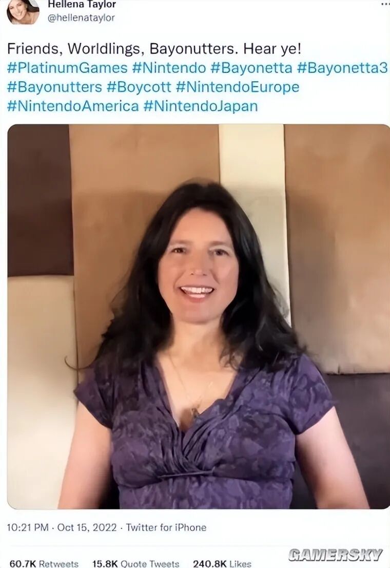 白金工作室的动作游戏《猎天使魔女》前两部作品中担任贝优妮塔英配的配音演员Hellena Taylor发推表示:自己之所以不再为三代贝优妮塔配音,是因为白金在和她谈论薪资时开出了4000美元的侮辱性价格。
