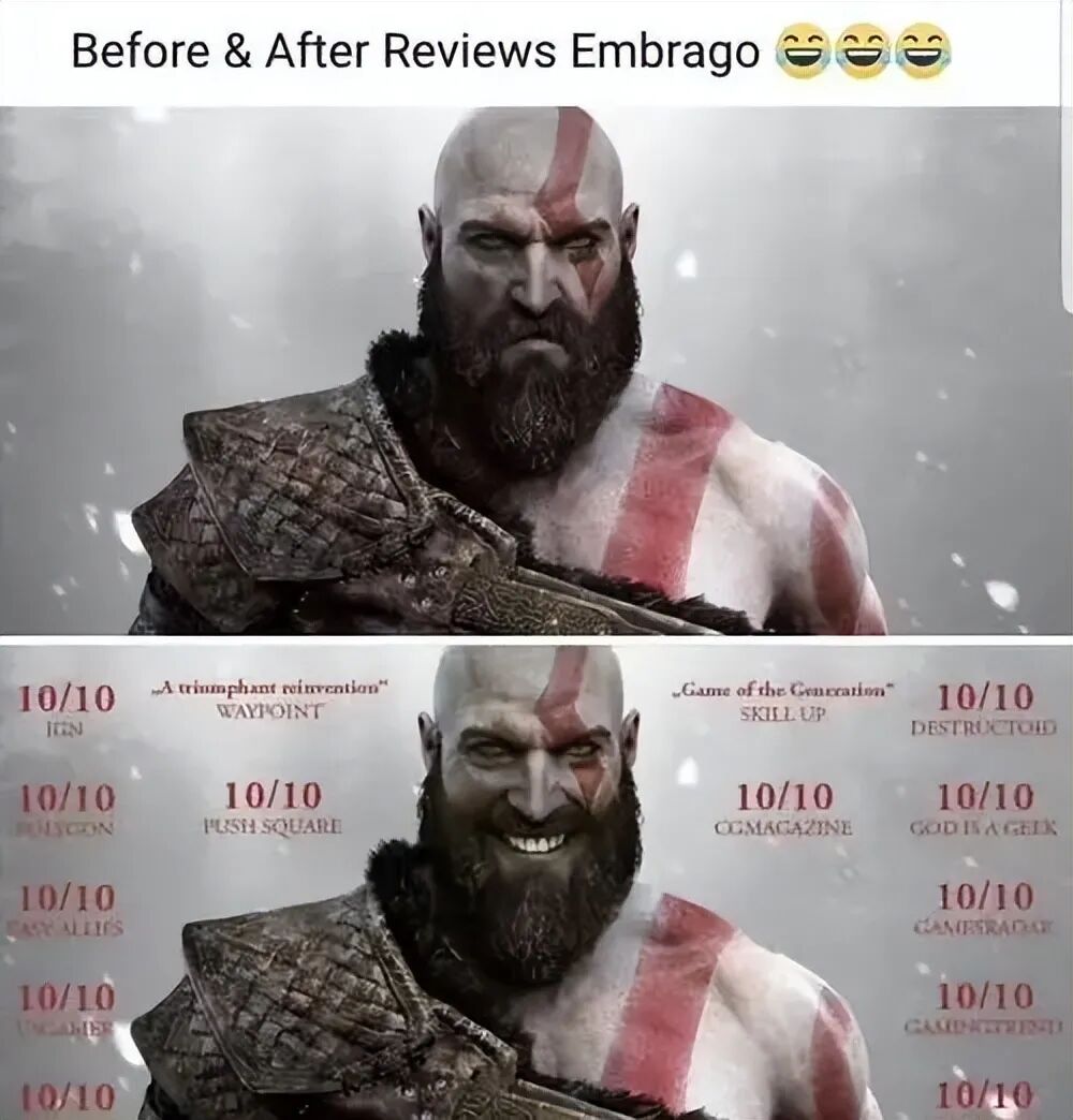 而游戏解禁后,他甚至不敢上网看评价,当看到Metacritic评分高达94时Cory Barlog哭了出来。不难看出,是圣莫妮卡不安于现状勇敢创新,才换来了媒体和玩家的敬佩。