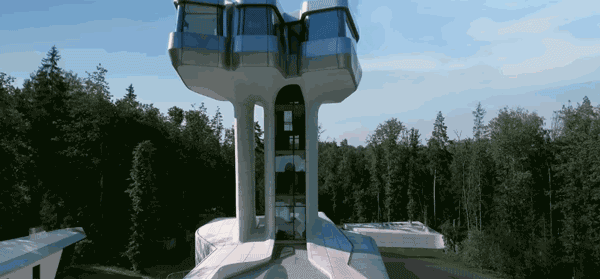 建筑外墙夸张的造型设计,让室内的窗景也显得格外不寻常。