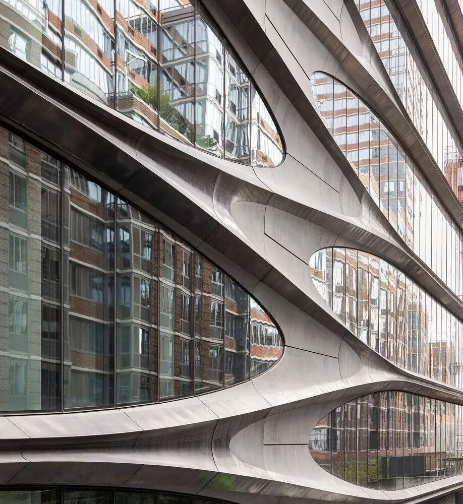 一改纽约住宅拥有坚硬棱角的传统印象, 520 west 28th 公寓有着充满动感的弧线造型,利用曲线将窗户与阳台连接在一起,透明的玻璃成为建筑结构中游离的界面,将原本生硬的构造变为唯美的装饰。
