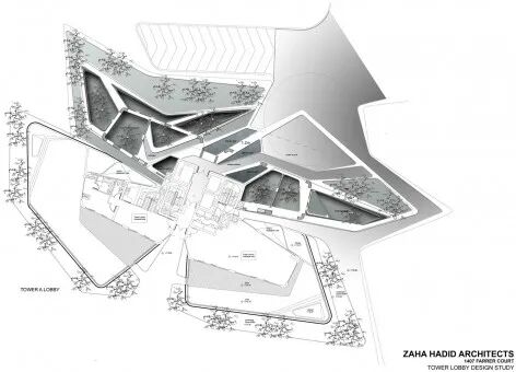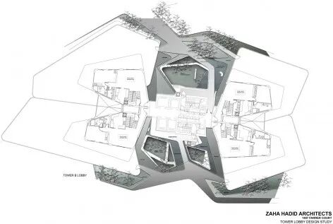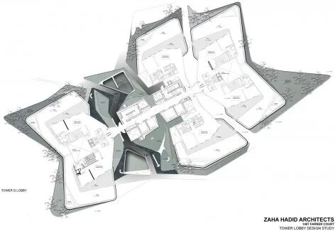 公共空间由扎哈·哈迪德设计,包括了大楼的大堂和位于 61 层上面的双层水上运动中心和一个空中酒廊。