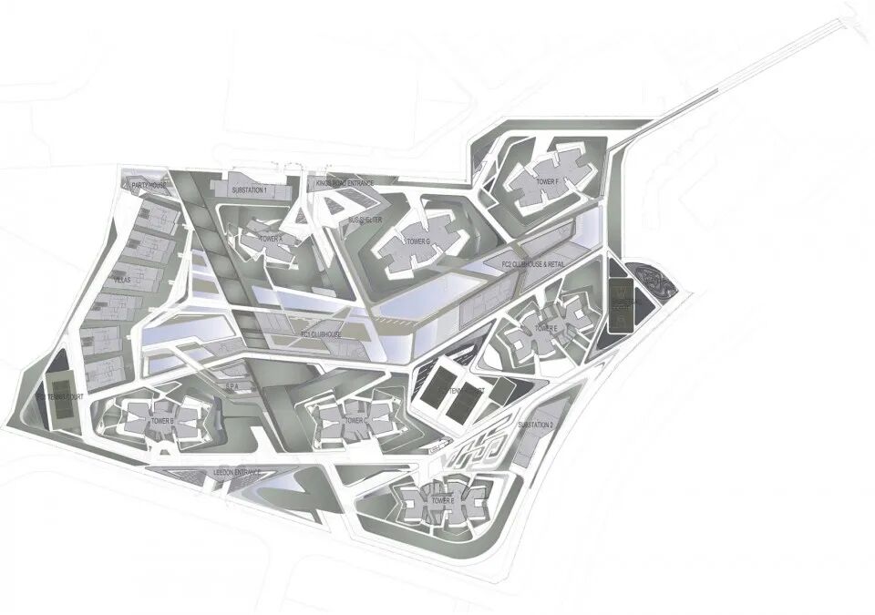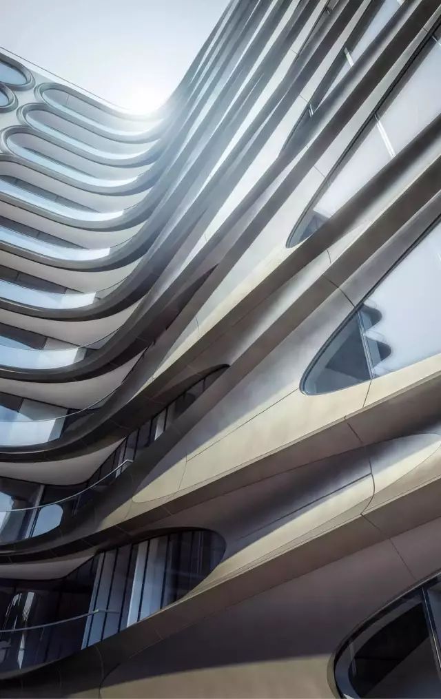 这一幢 62 层的奢华公寓,是扎哈·哈迪德过世前,设计完成的最大的住宅设计项目。包含了 83 套住宅单元,1 套两层楼的复式公寓,4 套连体别墅,8 套整层公寓和 70 套半层住宅单元。