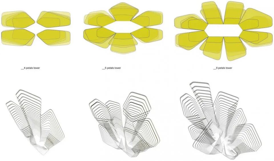随着层高变化,建筑的外骨骼成为唯一元素,产生了超大露台的独特形状,为每层公寓创建了丰富的室外空间。