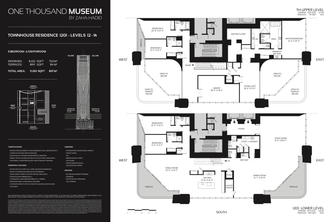 先看一下平面图,637㎡ 平层公寓,另有237㎡ 的屋顶及阳台,5个卧室,6个浴室,公布的售价为5000万美金,约合人民币3.5亿。