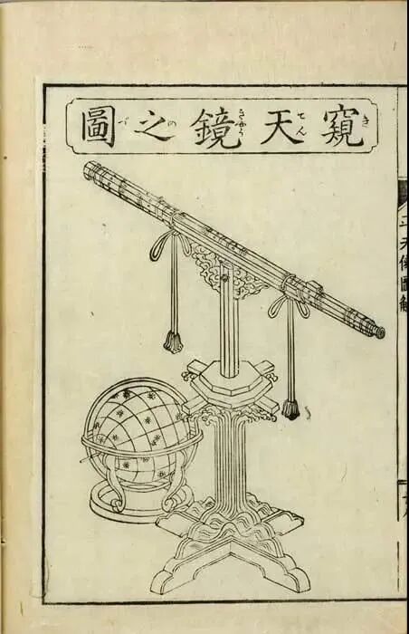 岩桥善兵卫所著《平天儀図解》中用来用来测量天体和潮汐的平天仪,主体是一架望远镜