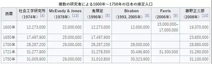 考虑到这些统计都包括一些不在籍的人口,根据人口学家的推算,早在1750年,日本的总人口就超过了3000万,比当时的奥斯曼帝国人口还多。