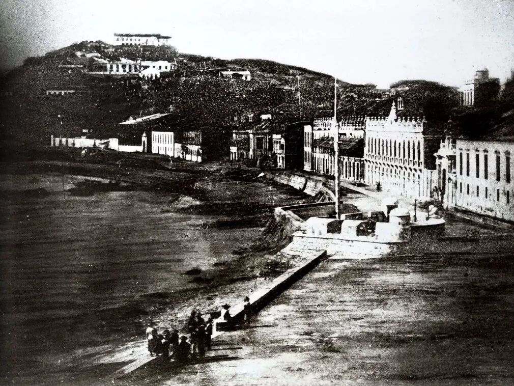南湾风光的一瞥,1844年。南湾原为澳门半岛的一处海湾,昔日为商船停泊之处。沿岸为澳门政治、商业中心。